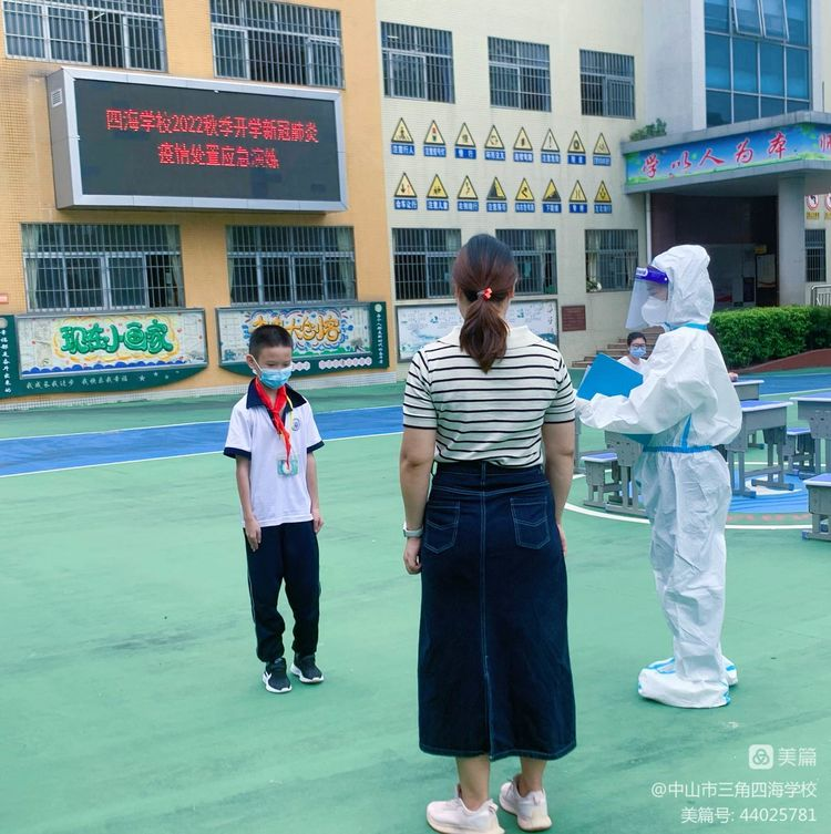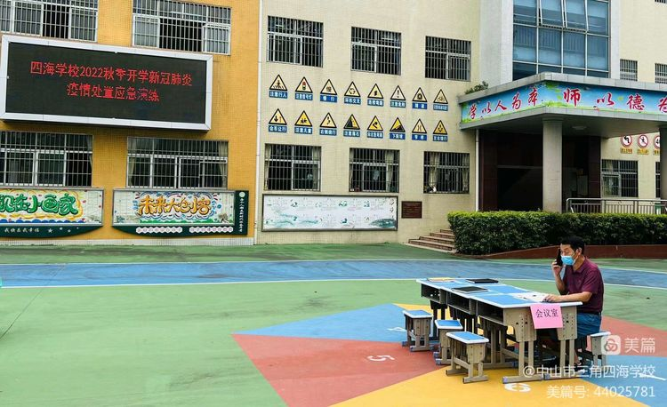 为了进一步规范新冠疫情防控工作,筑牢校园的防疫屏障,认真贯彻落实教体局关于疫情防控的有关文件精神,加强学校疫情应急处置的能力,保障师生的健康和生命安全。8月29号上午,四海学校在原有应急演练脚本的基础上,开展了“发现新冠肺炎阳性病例密接人员”应急处置演练活动。演练前,学校疫情防控工作组召开了专题会议,明确了疫情应急处置的每个流程及各岗位工作人员职责。上午9:00,演练活动正式开始,通过“情景式”演练,展现学校防控突发疫情的应急处置流程。
