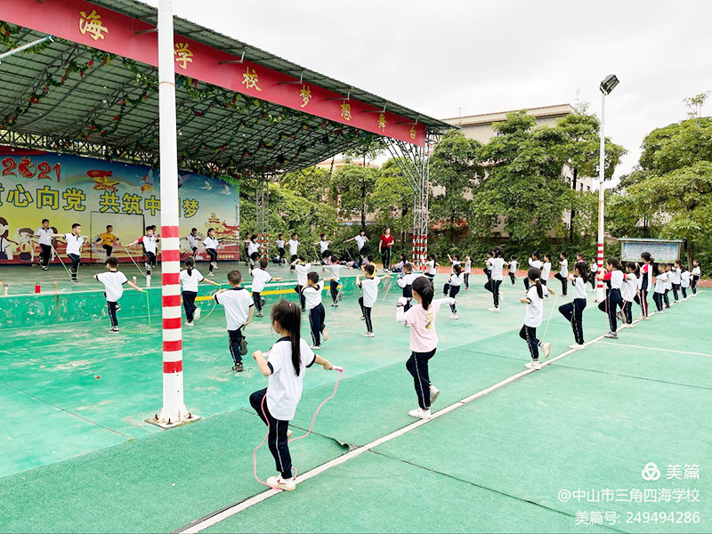 我校自2021年确立为中山市体育传统特色学校(跳绳)以来,学校以教师为主导,学生为主体作为目标。教师先练,然后带动学生积极训练。从点到线,从线到面,逐渐普及。经过师生的共同努力,学校跳绳训练队的刻苦训练,我校体育特色项目跳绳已初见成效。