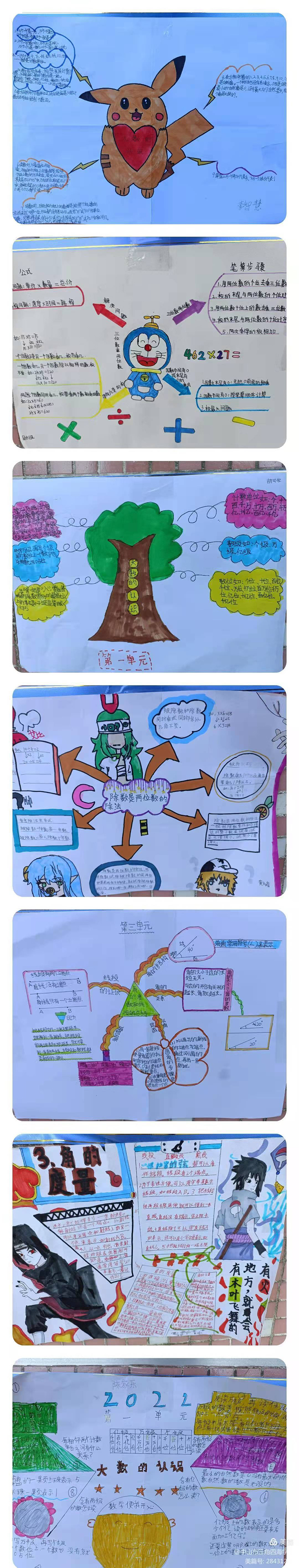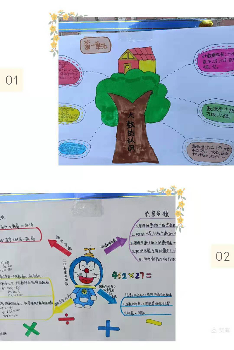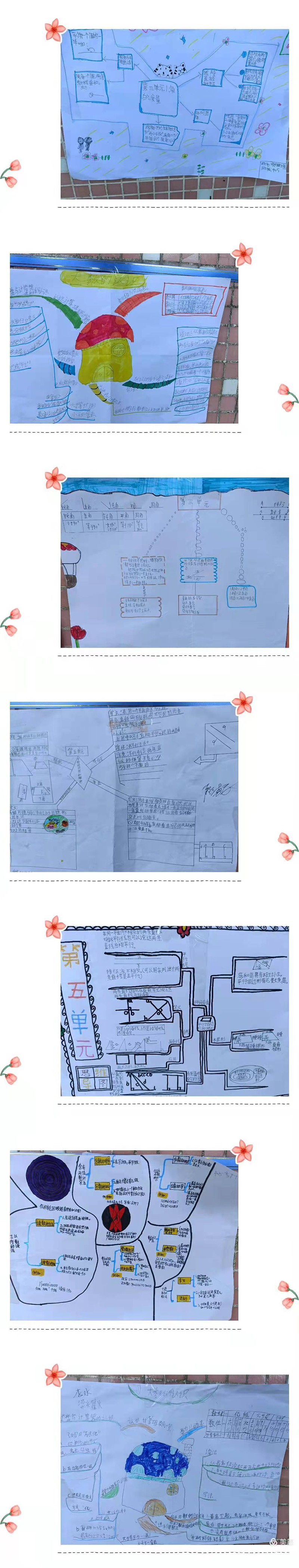 孩子们整理的思维导图,绘制了自己喜欢的图案,在他们的笔下,数学不再单调、枯燥,它可以如花朵绽放,也可以妙趣横生。