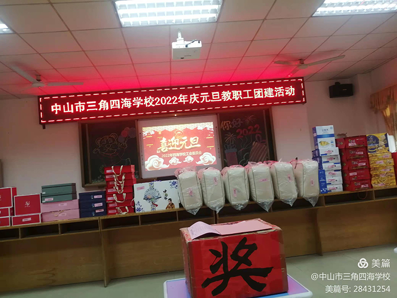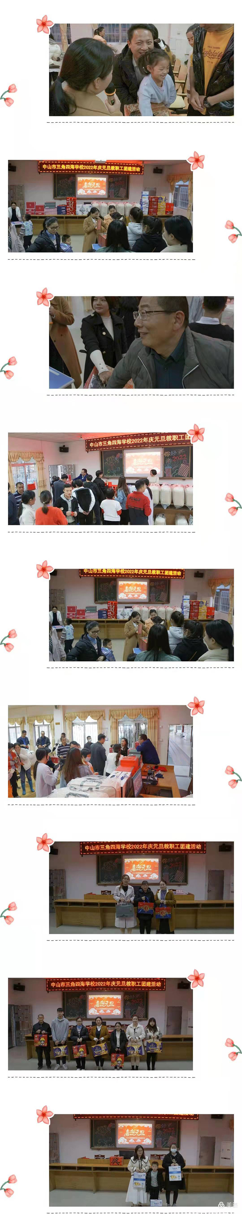 欢声笑语辞旧岁,满怀欣喜迎新年。为丰富教职工的文化生活,增强团队凝聚力,促进教职工之间的交流,增进教职工之间的友谊,创设文明、健康、和谐的校园文化氛围,四海学校工会委员会在12月31日举行教职工“迎新年•庆元旦”活动。