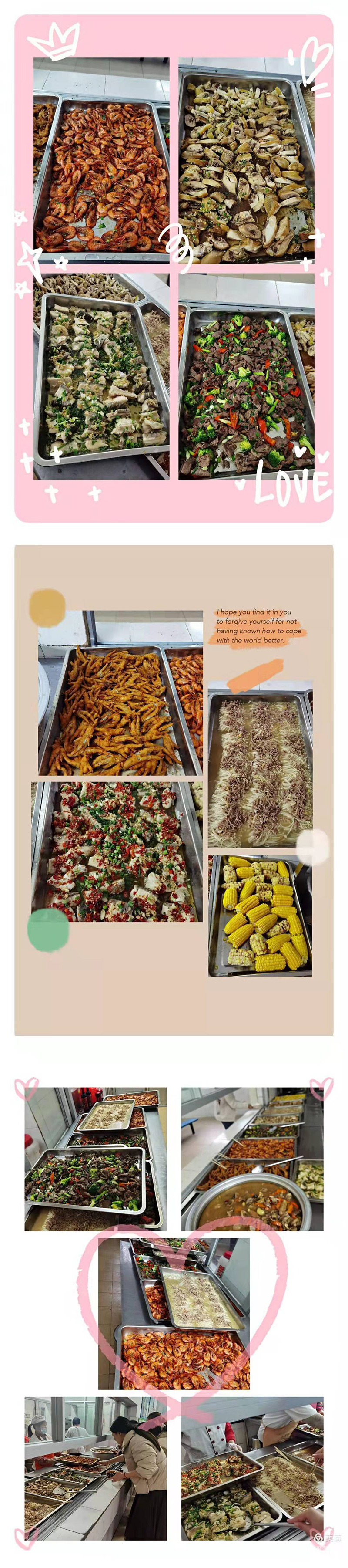 美食更能温暖人心,在厨房师傅们的团结协作、相互配合下自助餐工作早已准备就绪。一道道热气腾腾、色彩各异、美味飘香的佳肴展现在餐桌前,有蒸饺、五彩饭、玉米、虾片、薯条、小面包……热气腾腾的佳肴映着老师们幸福的笑容,瞬间使新年气氛带入到高潮。