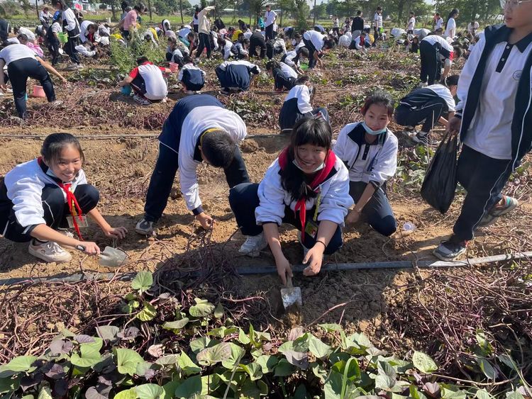 紧接着为了更能亲近大自然,认识大自然,同时感受农家生活,孩子们来到了田里开始挖红薯,他们拿着小铲子,在老师的指导下挖开泥土,寻找红薯,田野里不时传出惊呼声,发现红薯的惊喜互相感染着,劳动场面热闹非凡!看着自己挖出来的红薯,孩子们脸上都乐开了花,体验收获的辛劳和喜悦。