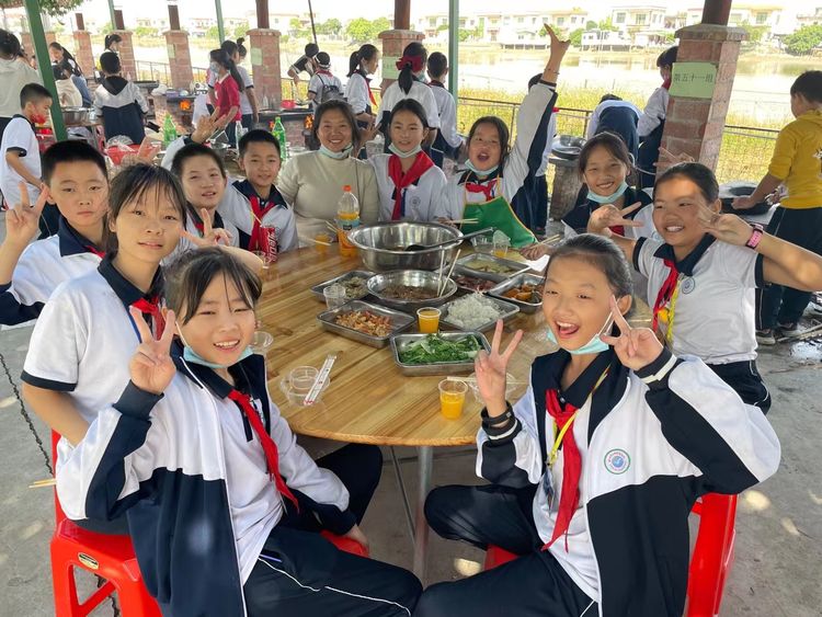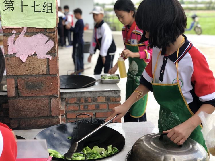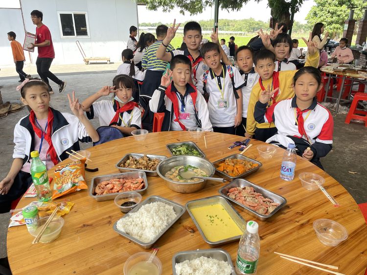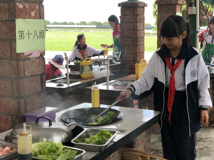 劳动课的高潮部分要算野炊了,你摆桌洗菜,我生火做饭,各司其职,有模有样,个个忙地不亦乐乎,不一会的工夫,一桌桌精美可口的饭菜就整齐的摆在桌面上了。