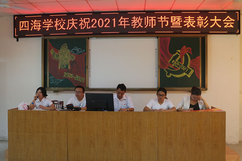 金秋九月,桂子花开、硕果沁香。9月10日中午,四海学校全体教师在阶梯教室欢聚一堂,隆重召开“四海学校庆祝2021年教师节暨表彰大会”,会议由副校长王凤兰主持。