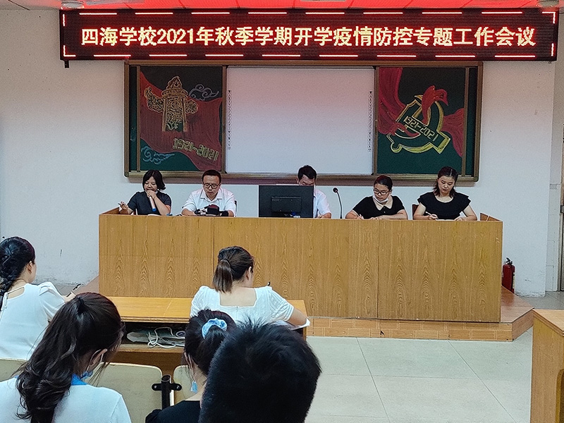 为加强新冠肺炎疫情防控,扎实做好开学前疫情防控准备工作,提高防范和应急处理能力,8月27日晚,四海学校在阶梯教室召开了“2021年秋季学期开学疫情防控专题工作会议”。会议由四海学校后校长主讲,全体老师参与了本次会议。