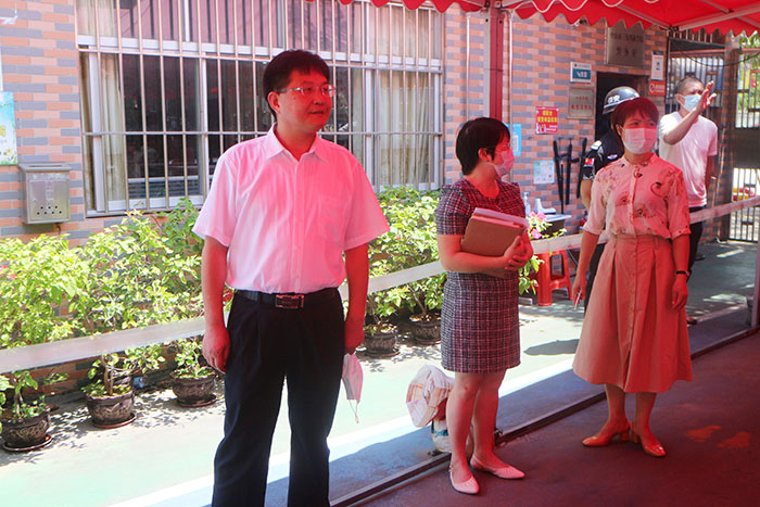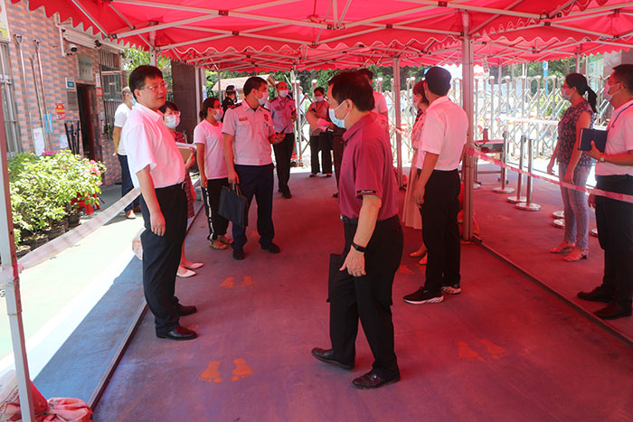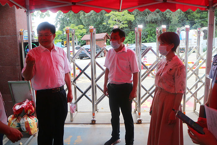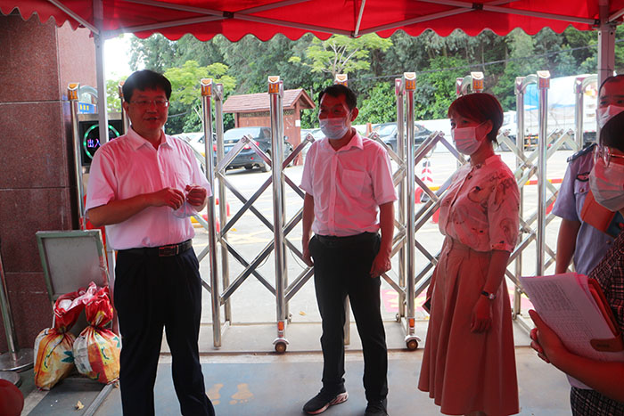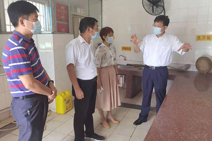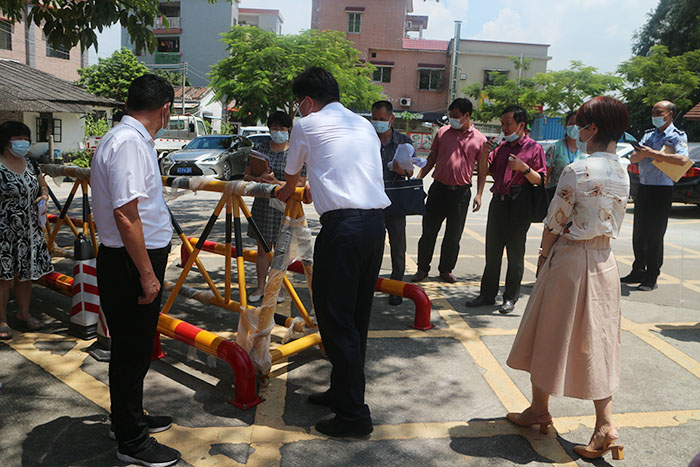 8月20日上午,中山市教体局副局长黎国喜带领市市场监管局、市住建局、市公安局治安管理支队、市公安交警支队、市消防救援支队组成的中山市校园安全综合治理检查组,来到四海学校进行校园安全综合治理专项检查,三角镇党委委员李铭霞、镇教体文旅局杨慧芬局长、镇教育和体育事务中心段子元主任以及全体成员陪同检查。