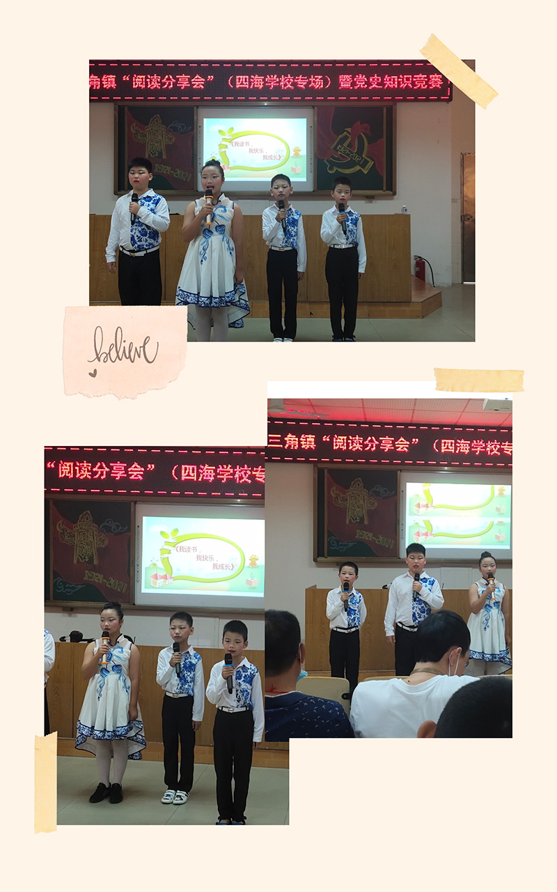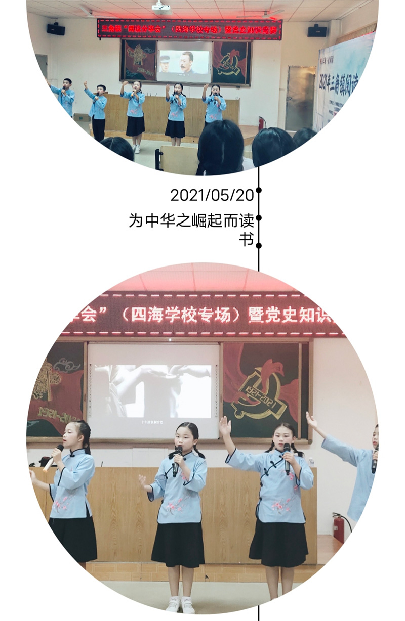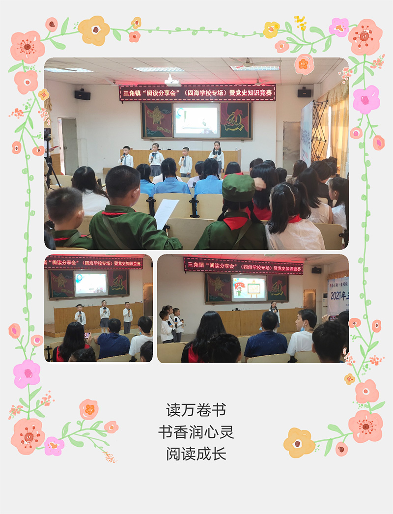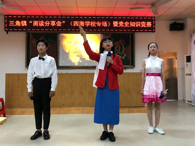 忆往昔峥嵘岁月,用心感受祖国前行的步伐,用行动践行爱党、爱国精神,是每一位学子的光荣使命。5月20日,四海学校联合东南村党群服务中心、三角镇宣传文化服务中心,举办党史学习阅读分享会暨党史知识竞赛活动。