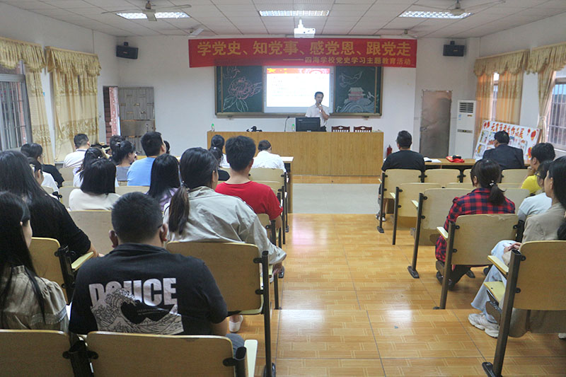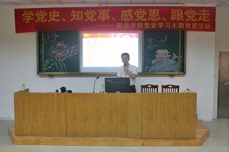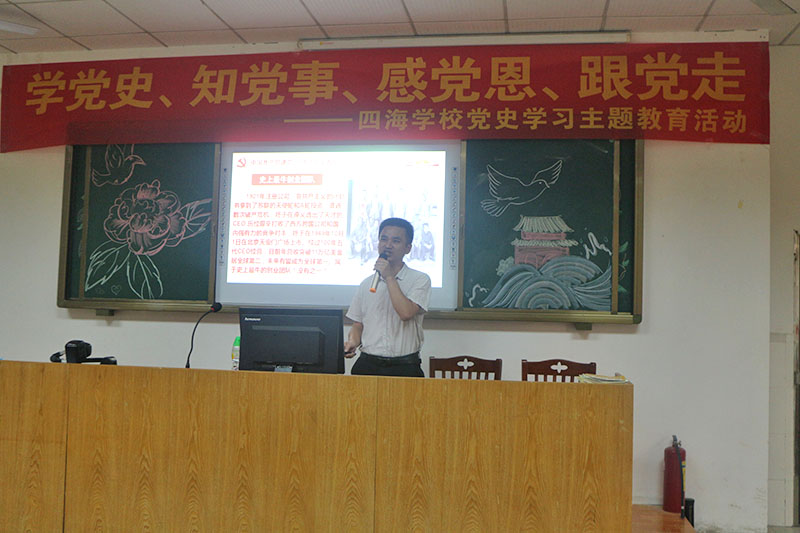 为隆重庆祝建党100周年,重温党的光辉历程,歌颂党的伟大成就,继承和发扬党的优良革命传统。4月29日晚,三角镇党史宣传志愿者、沙栏中学卢富生主任走进四海学校向全体教师进行党史学习主题教育宣讲活动,以“百年奋斗创业路、为民起航新征程”讴歌伟大的中国共产党百年来的光辉历程和所取得的辉煌成绩。