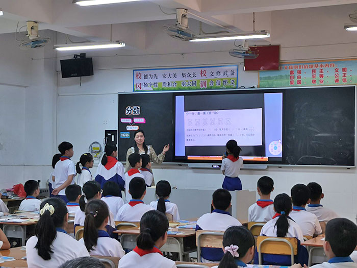 我校郑华丽老师在三角小学执教了一堂别开生面的五年级下册《分数的意义》研讨课,郑老师基于学情,精选内容,通过学生的自主学习,提炼核心思路、方法,让学生对本节学习内容有了透彻的理解。课堂上郑老师语言优美,仪表大方,充分利用学生的心理特点,创设学生喜爱的教学情景。学生在课堂上热情高涨,积极思考,同伴互助,踊跃展示,碰撞出了许多智慧的火花。听课老师沉浸其中,有了酣畅淋漓的感觉,为今后大家的课堂实践提供了优秀的参考案例。