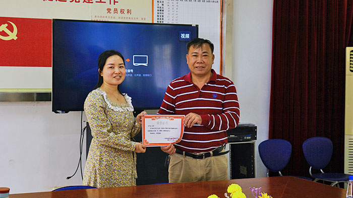 精彩课程结束后,两校的数学科组长及时组织两校的数学教师围绕课堂教学进行了点评和深入探讨。大家都畅所欲言,对教学中的实际问题进行了分析,深入的反思,务实地讨论这节课的亮点及尚待改进的地方。经过一番精彩的讨论,每个参与的教师都受益匪浅。镇教育和体育事务中心周荣纯校长对两校的交流活动给予了充分的认可并为两位授课教师颁发了荣誉证书。