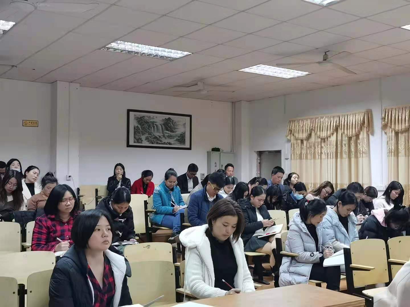 首先,谢主任向老师们一一介绍了冬春季常见的几种传染病——水痘、诺如病毒、流感等的传染源、传播途径、主要症状及预防措施。紧接着,她对继续做好卫生防疫工作,保障师生的身体健康,提出了五方面的工作要求:一是做好新冠肺炎疫情及冬春季节传染病的防控工作;二是日常学习生活中要做到,常通风、勤洗手、少聚集;三是做好师生晨午晚检及因病缺勤工作;四是各班要开展形式多样的健康教育工作;五是各班要做好卫生清洁及消毒工作。