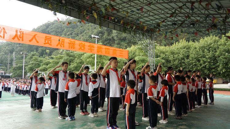 在昂扬的出旗曲中,少先队旗手与护旗手们迈着整齐的步伐,精神抖擞地进行着庄严的出旗仪式,少先队入队仪式也由此拉开帷幕。