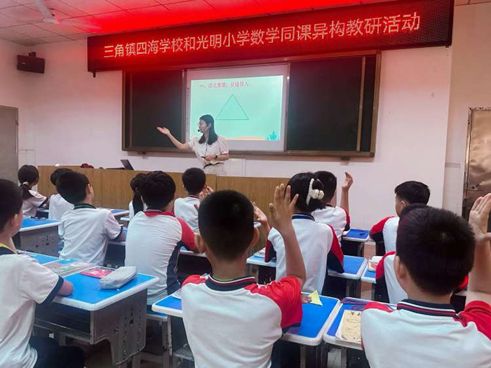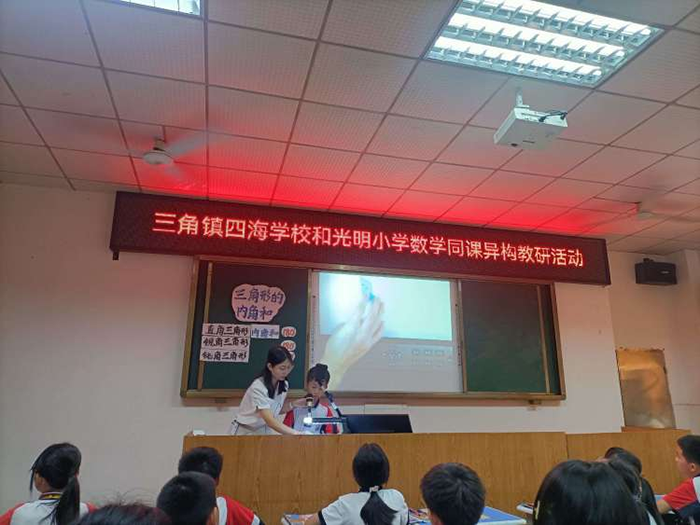 莺歌燕舞,桃李芳菲。2024年4月17日,在三角教育和体育事务中心的组织领导下,在清新怡人的四海学校开展了三角镇“同课异构”(四海学校和光明小学)教研活动。授课课题是《三角形的内角和》结合“前置探究”同研共进,智慧共享,让我们饱餐了一场高效课堂改革的饕餮盛宴。