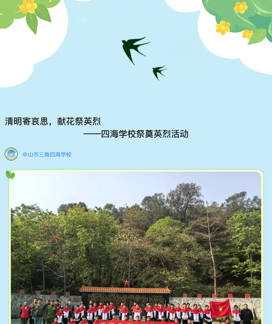 清明寄哀思,献花祭英烈——四海学校祭奠英烈活动
