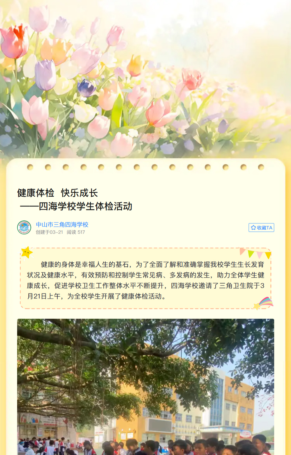 健康体检 快乐成长——四海学校学生体检活动