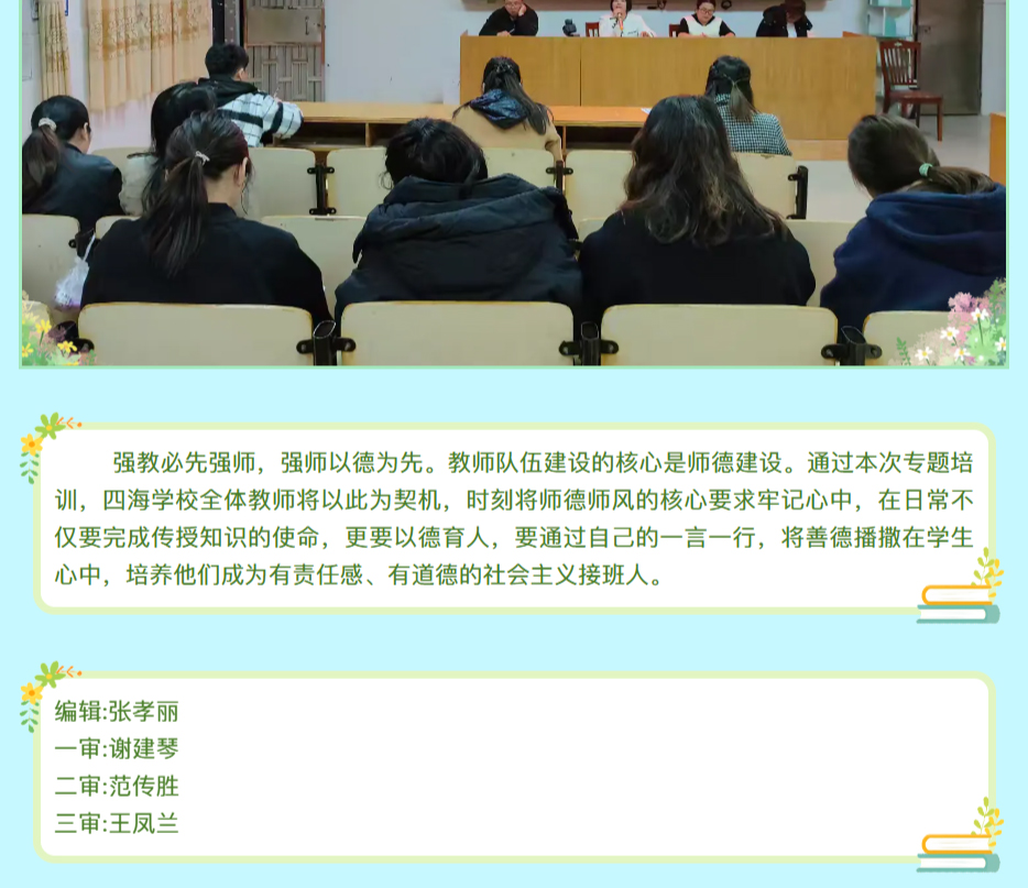守师德之心,绽师风之美——四海学校师德师风专题培训