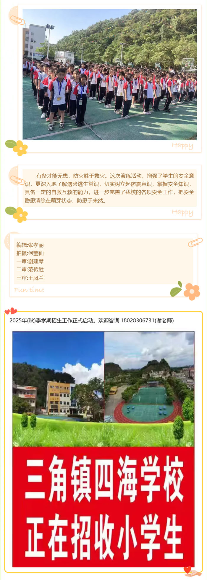 临“震”不乱,有备无患——四海学校开展防震安全演练活动