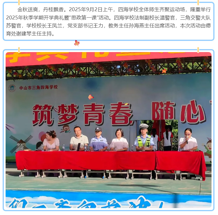 自信少年,梦想起航——四海学校开展开学典礼暨思政第一课活动