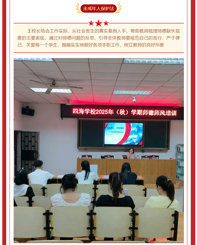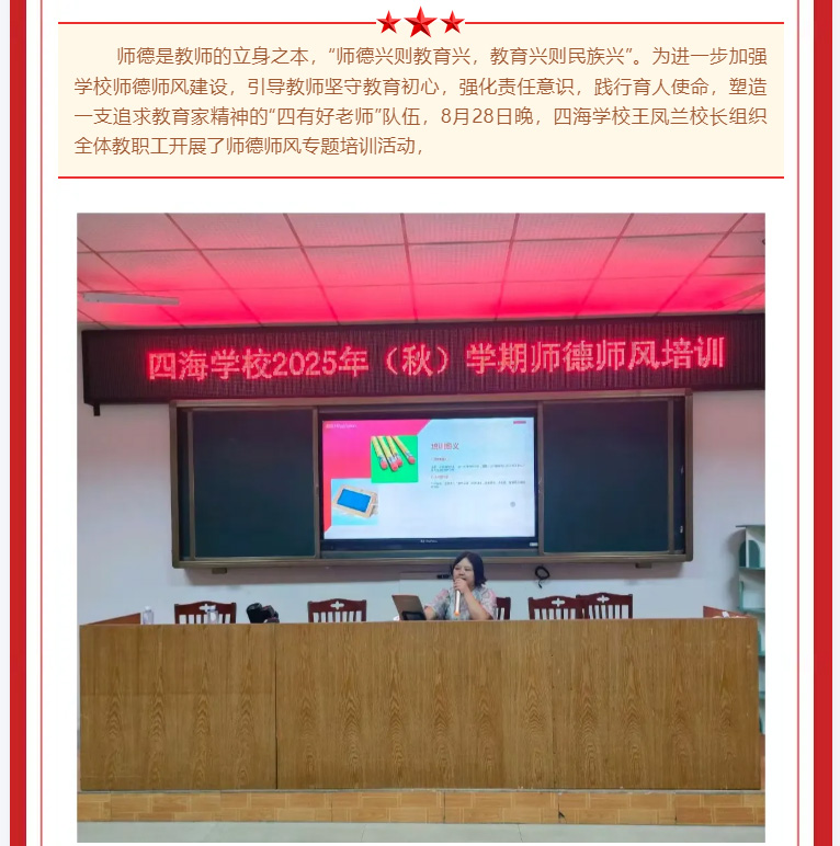 师德为先,以爱为本——四海学校开展师德师风专题培训
