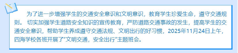 文明交通,安全出行——四海学校开展交通安全主题班会