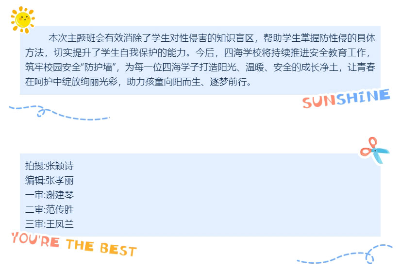 守护花开,向阳生长——四海学校开展预防性侵主题班会活动